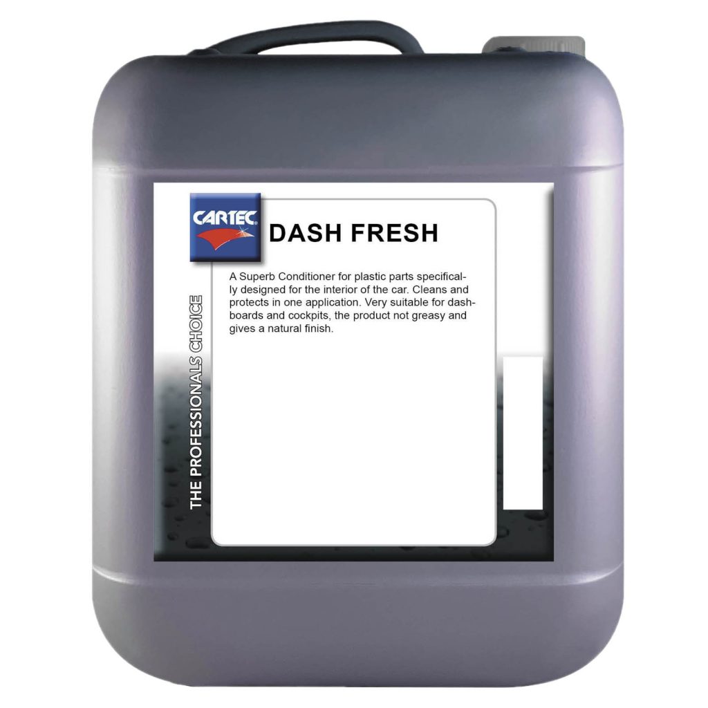 Silikona bāzes tīrīšanas un aizsardzības losjons. Rotā un notīra automašīnas salonu, piemēram, paneli un durvju apdari. Dash Fresh piešķir plastmasai, vinilam un ādai atkal svaigu izskatu. Produkts nav taukains un piešķir oriģinālu zīda matētu spīdumu.