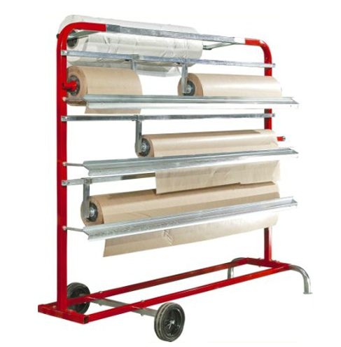 Pārvietojams pārklājuma papīra turētājs dažādiem pārklājuma papīra platumiem ar pārklājuma papīra asmeņiem.