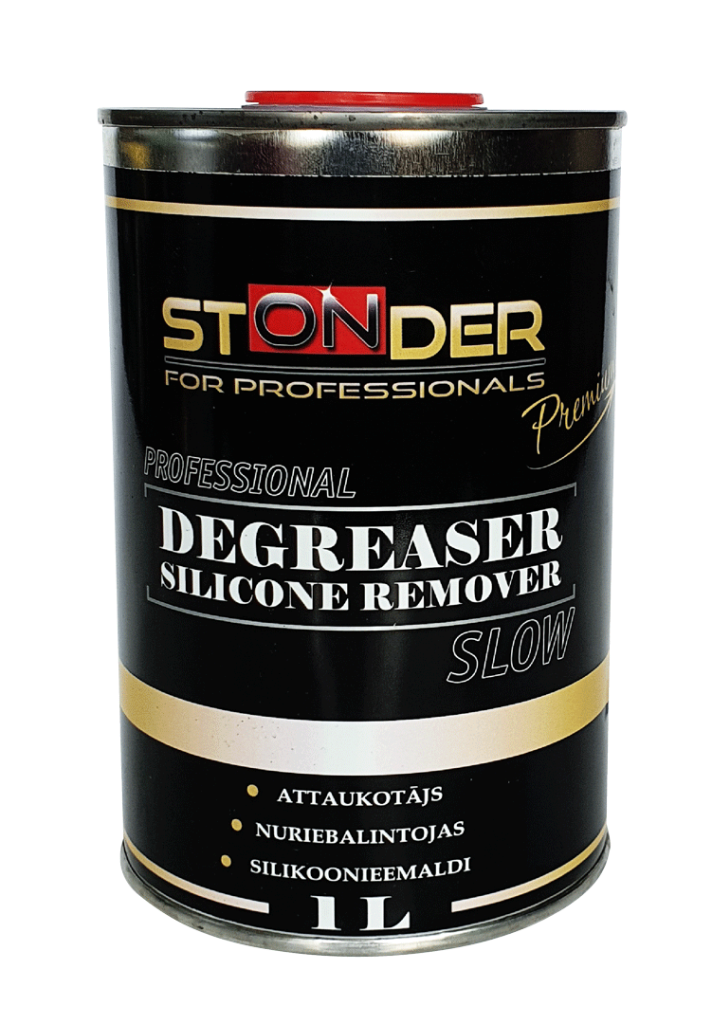 Silikona noņēmējs efektīvi noņem visus netīrumus, ieskaitot taukus un silikonu. Neatstāj baltas svītras un tam nav nepatīkamas benzīna smakas. Efektīvs tīrīšanas līdzeklis pirms krāsošanas. Tas tiek ražots no īpaša šķīdinātāju maisījuma. Piemērots lietošanai uz šādām virsmām: